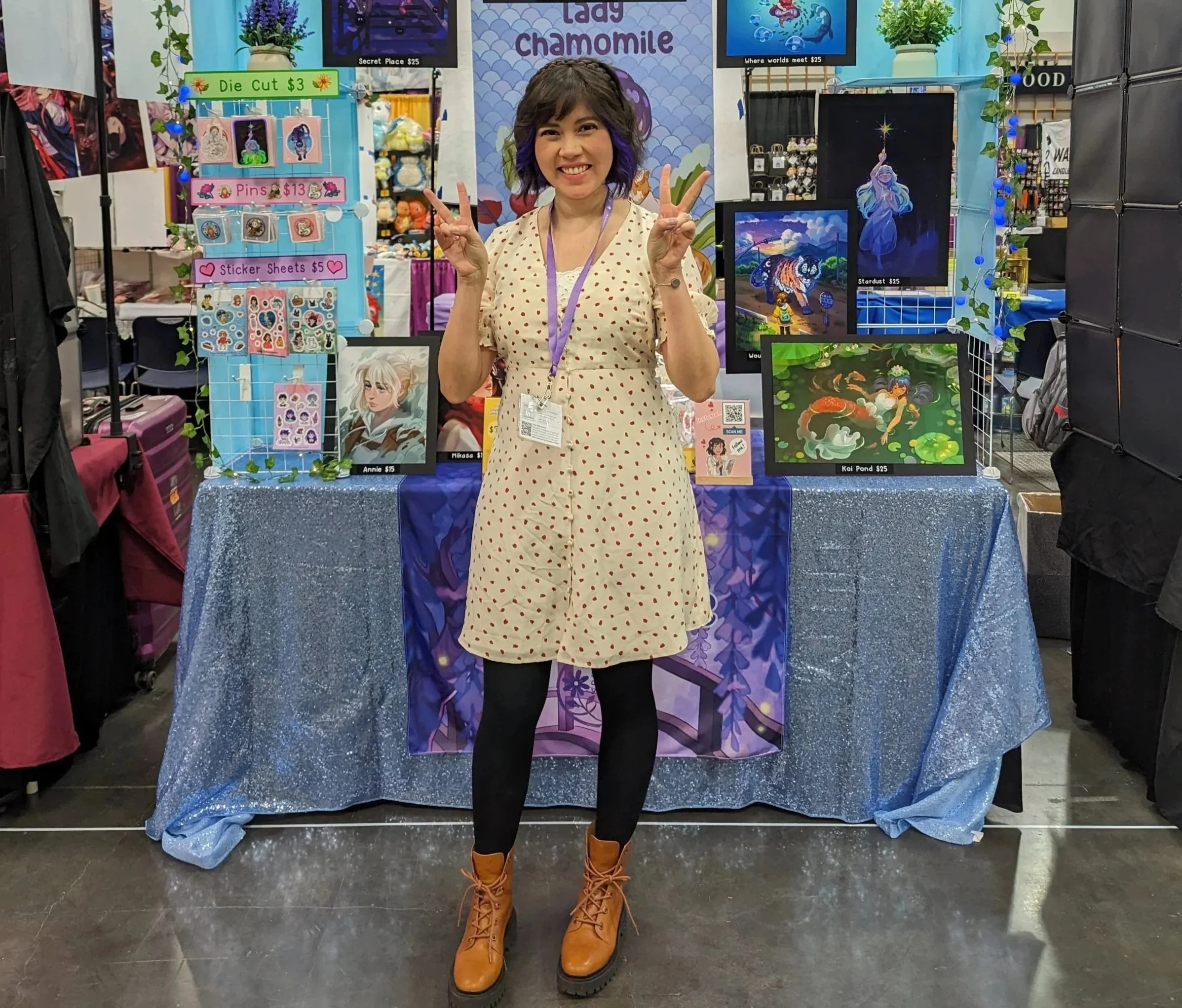 I currently live in the Pacific Northwest. Mostly self-taught, I’ve relied on studying from books, YouTube videos, and online classes focused on perfecting the fundamentals. With Studio Ghibli as my muse, I create prints, keychains, buttons, tote bags, postcards, pins, stickers and playmats that showcase my whimsical style. I hope to tell uplifting stories through my illustrations and character creation that remind us to always set aside some time to daydream.